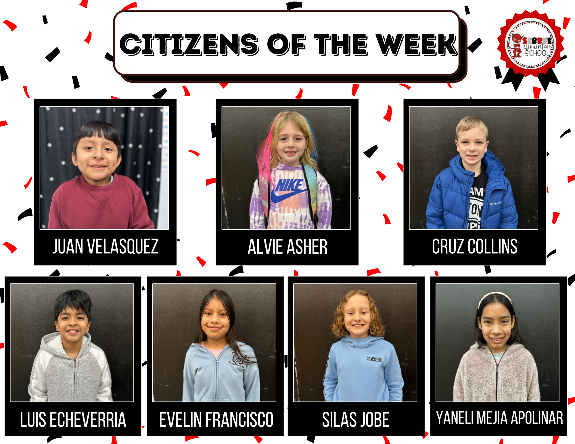 We are thrilled to recognize this week’s Citizens of the Week for their outstanding dedication to being respectful, responsible, and safe! These students have set a shining example for their peers and contributed to making our school a great place to be! Thank you for being role models and showing us the importance of kindness, responsibility, and safety in everything you do. Keep up the fantastic work, and let’s all strive to follow their example!